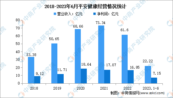 平安健康是平安集团管理式医疗模式的重要组成部分及医疗健康生态圈的旗舰。凭借丰富的支付方资源、完善的供应商网络、领先的服务体系以及强大的平安生态赋能等核心竞争优势,平安健康坚持打造“管理式医疗+家庭医生会员制+O2O医疗健康服务”的独特商业模式。2023年1-6月,平安健康实现营业收入22.22亿元,实现净利润7.15亿元。