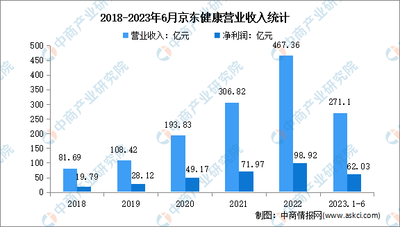 京东健康是中国最大的在线医疗健康平台,也是医疗产业链数字化改造的领跑者,致力于打造以医药及健康产品供应为核心,医疗服务为抓手,数字驱动的用户全生命周期全场景的健康管理平台。截至2023年6月30日,京东健康互联网医院日均在线问诊咨询量超过44万。2023年1-6月,京东健康实现营业收入271.1亿元,净利润达62.03亿元。